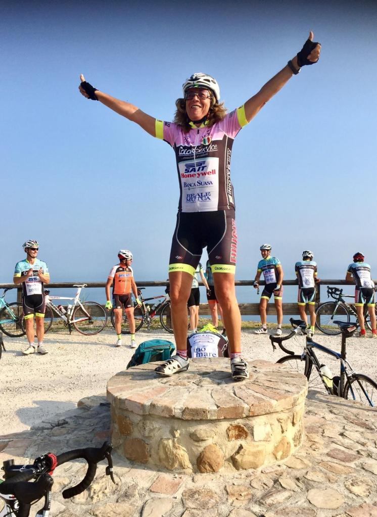 Another tradition is that Sabrina adopts a triumphant pose at the top of the Panoramica climb.