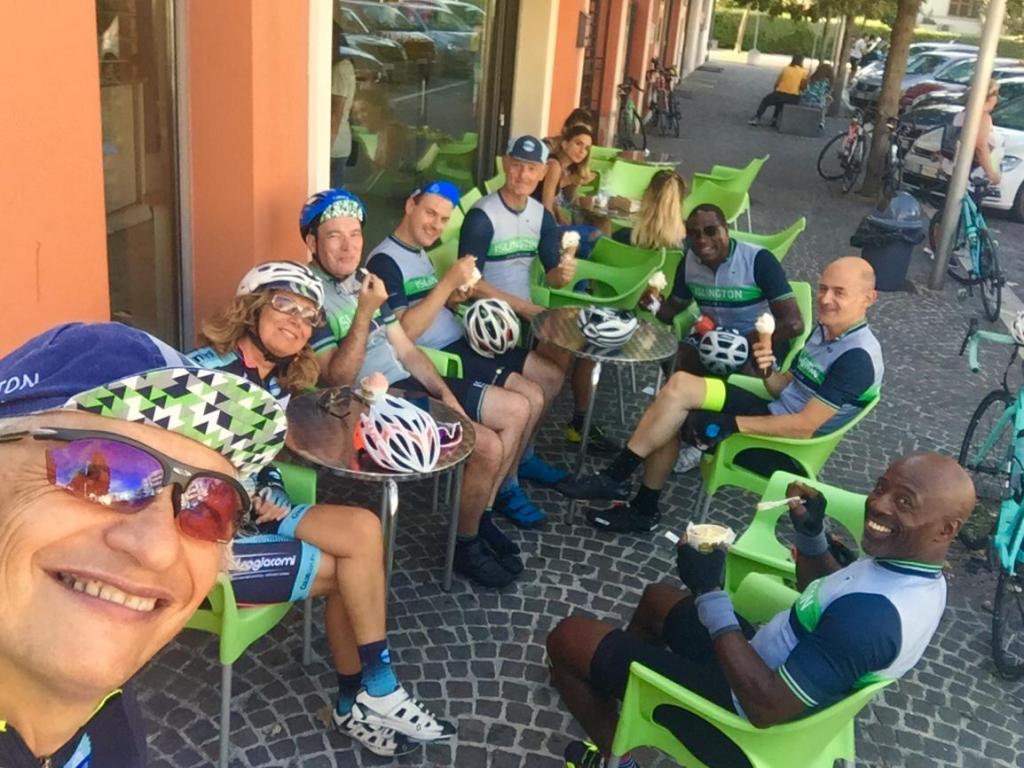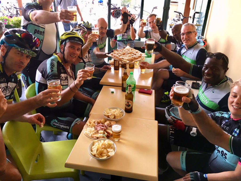 By the end of their first day, the entrepid five realised their Italian adventure was a celebration of international friendship, eating, drinking and photos, with some cycling thrown in.