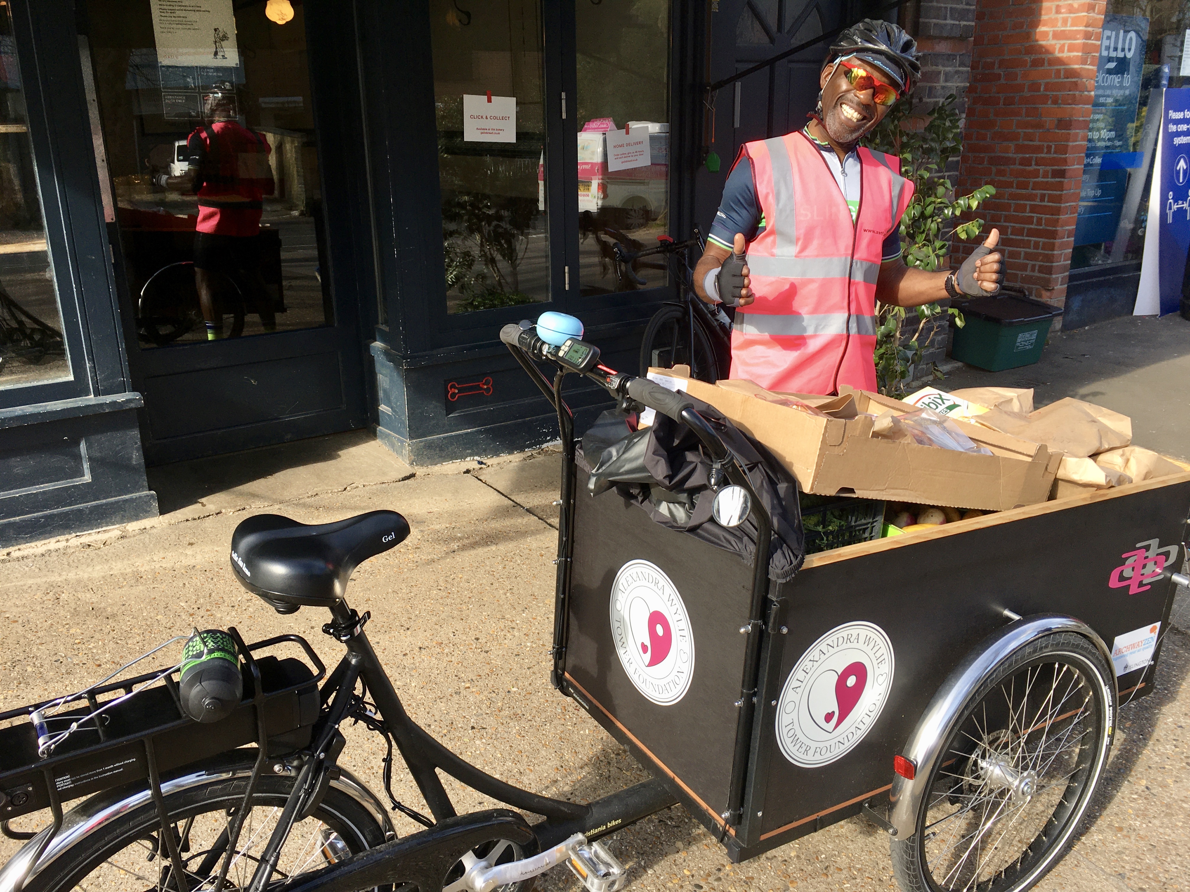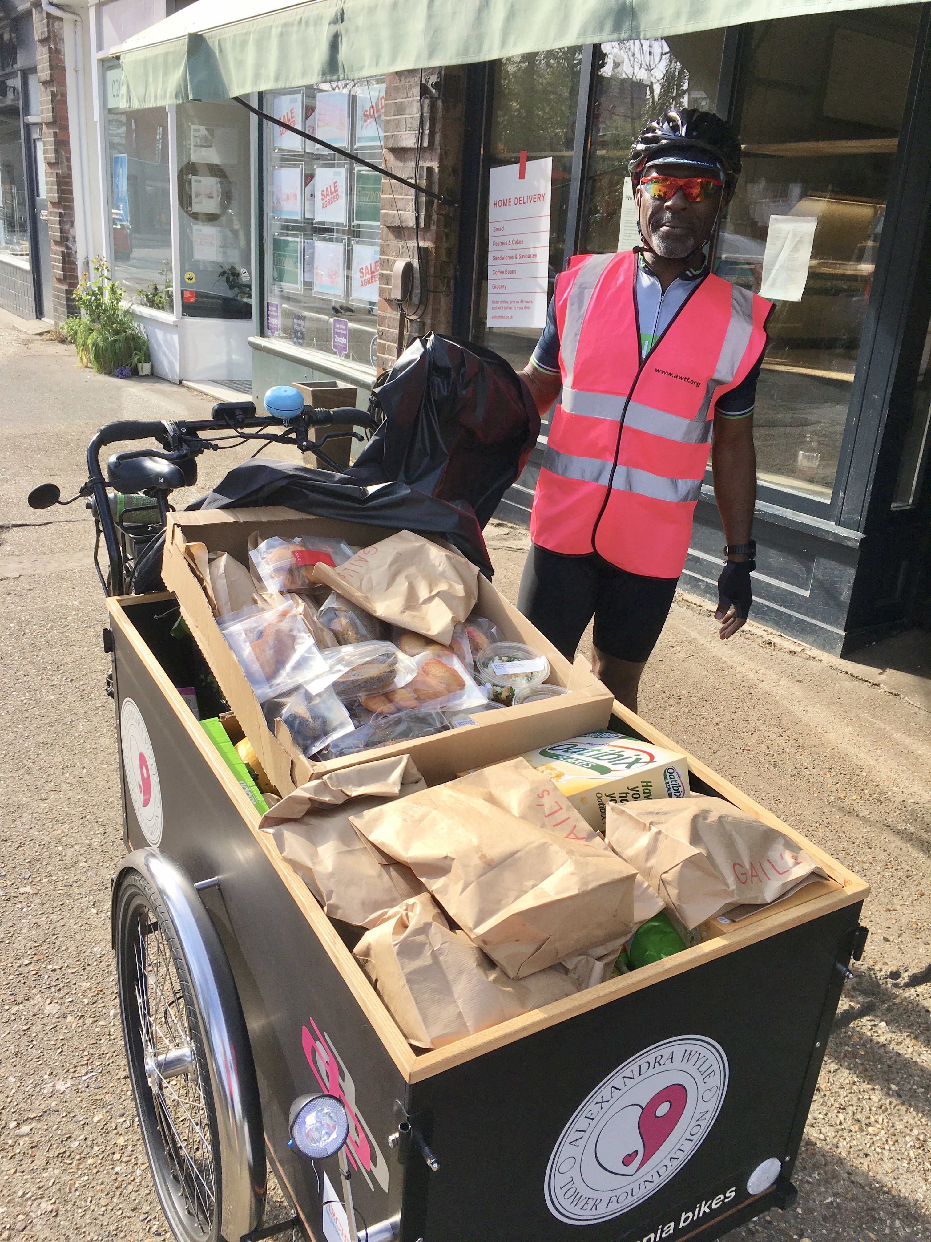 We now have a rota organised. Two of us for each run. I rode with Jyde today. My first time on the electric cargo bike – it shifts! Great news is that despite the bakeries closing, Greens of Muswell Hill and Greens of Highgate came up trumps, and some nice treats from Gail’s Bakery on Swain’s Lane. Thank you guys.