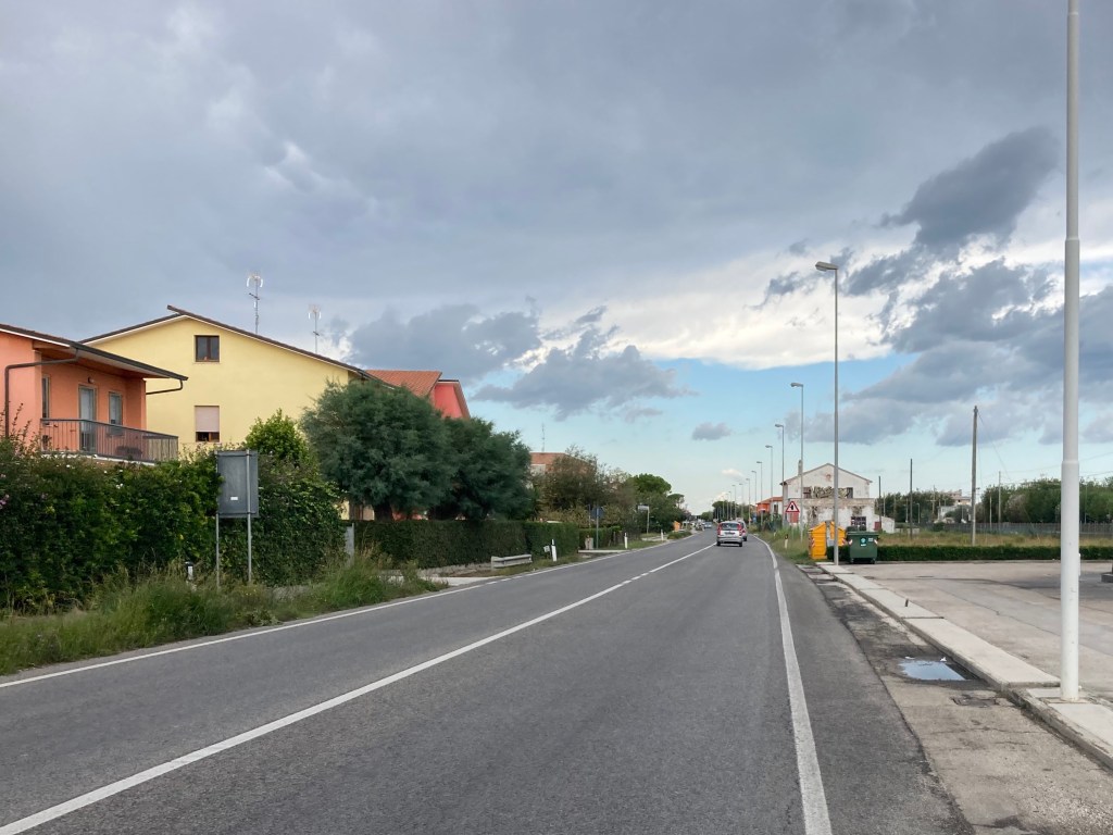 Now at the ‘M’ on the map I turned to the north to head for Fano. 12.5km of flat coastal road with a strong cross wind before I had to turn West again. I could see the target ahead of me. The patch of blue sky. Could I outride the rain again and see the clouds pass behind me out to sea?