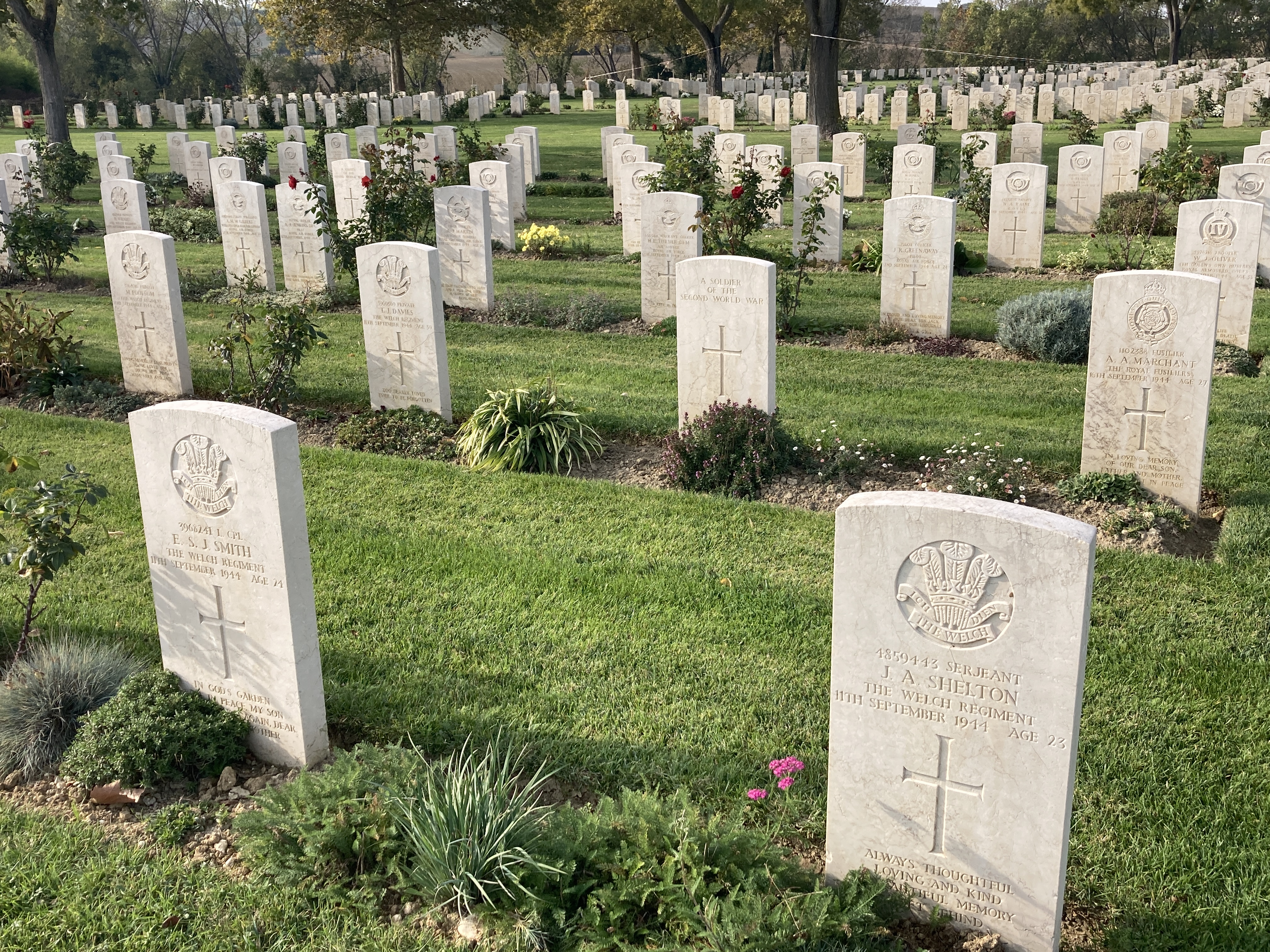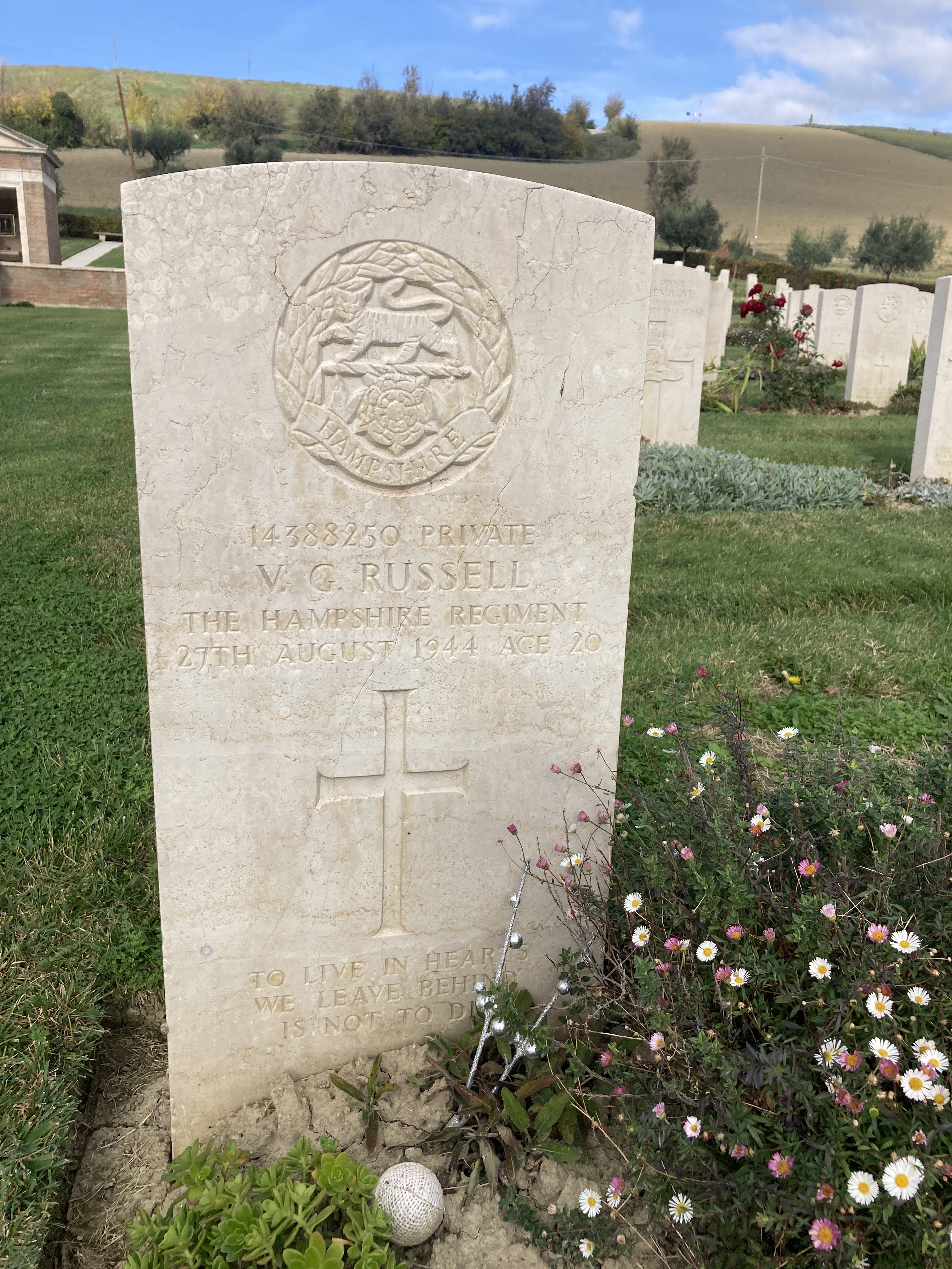 I spent some time at each thinking about those laid out in front of me. I found my first stop at Montecchio particularly emotional as the first grave I came across was a 20 year old who, like me, was from Hampshire. Private V. G. Russell only just made it out of his teens. I have made it to 62. Sobering.
