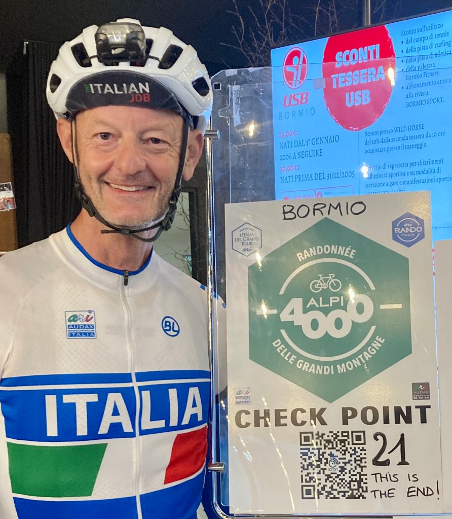 My sincere thanks to those who helped me along the way, including Pino Piermaria (who got me started), Stefano Mancini (Bianchi bikes in Fano), my friends from La Centinarolese (my Italian Cycling Club), Islington Cycling Club (my London club), Pino Leone (Captain of Audax Randonneur Italia), everyone at Audax UK, Audax Randonneur Italia, all the riders I have ridden with and all the volunteers who’ve organised and supported audaxes around the world.