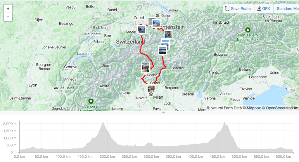 After the National Meeting on Saturday we had a choice of 200km, 400km or 600km. When I saw the 600km went through Chur I had no choice but to sign up.
