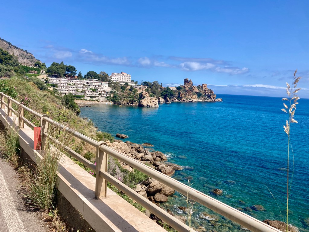 The first was do I slow down? We’d stopped for coffee just 36 km into the first day. Fioravante had been riding off the front already and didn’t stop so we were already one rider less. As is normal with a group the coffee stop took longer than strictly necessary. I had time to record our stop at Sciacca where Luigi used to go with his family to buy fish.