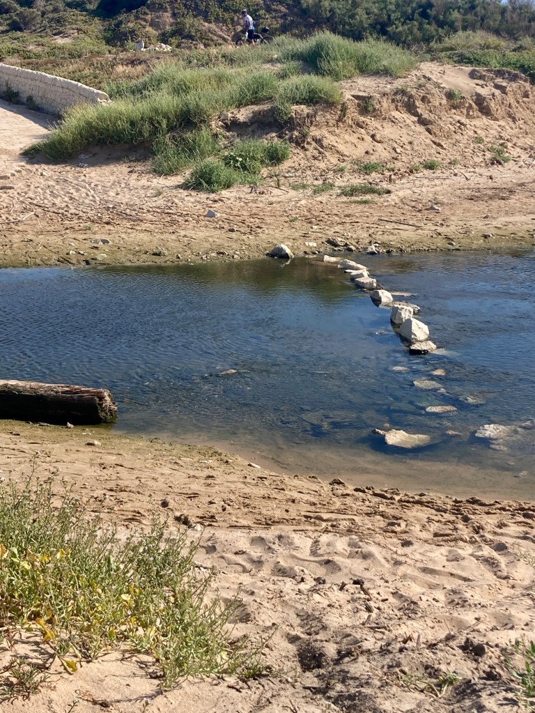 There were two solutions to chose from. Either walk through the water with your shoes and socks still on and let them dry out whilst riding, or take them off and dry your feet on the other side.