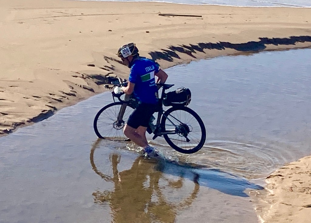The heat soon dried our feet and we were on our way. Next stops were the controls at Marina di Ragusa (901 km) and Portopalo di Capo (966 km). After leaving the last control before the finish with only 59 km to go Fioravante’s bike starting making strange noises. We couldn’t work out what it was but I’ve never known a bike problem resolve itself by riding, it usually only gets worse. With 40 km to go the route turned left, Fiora went straight ahead. I shouted “sinistra, sinistra” but he was gone. I waited for 5 minutes to see if he would return but I had to make my final decision of the whole ride. Wait, try to follow or stick to the route. I chose to continue on the route as I had no idea where he was going. He called a while later to explain he was so concerned about the noise he thought it better to head direct to the finish rather than get stranded. That didn’t quite work out so he ended up back on the route anyway, finishing a little behind me. Rear wheel bearings were the culprits. A shame we didn’t finish together but it was only a few km on our own.