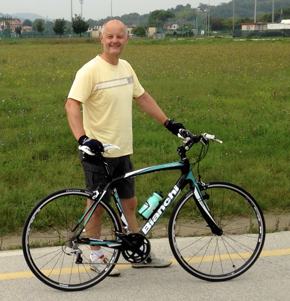 As part of my recovery I decided to try cycling (I can’t run, too painful). I bought a bike from the local Bianchi dealer, Stefano, and spent the winter of 2014/15 on an outdoor 2.4km cycling track in Fano.